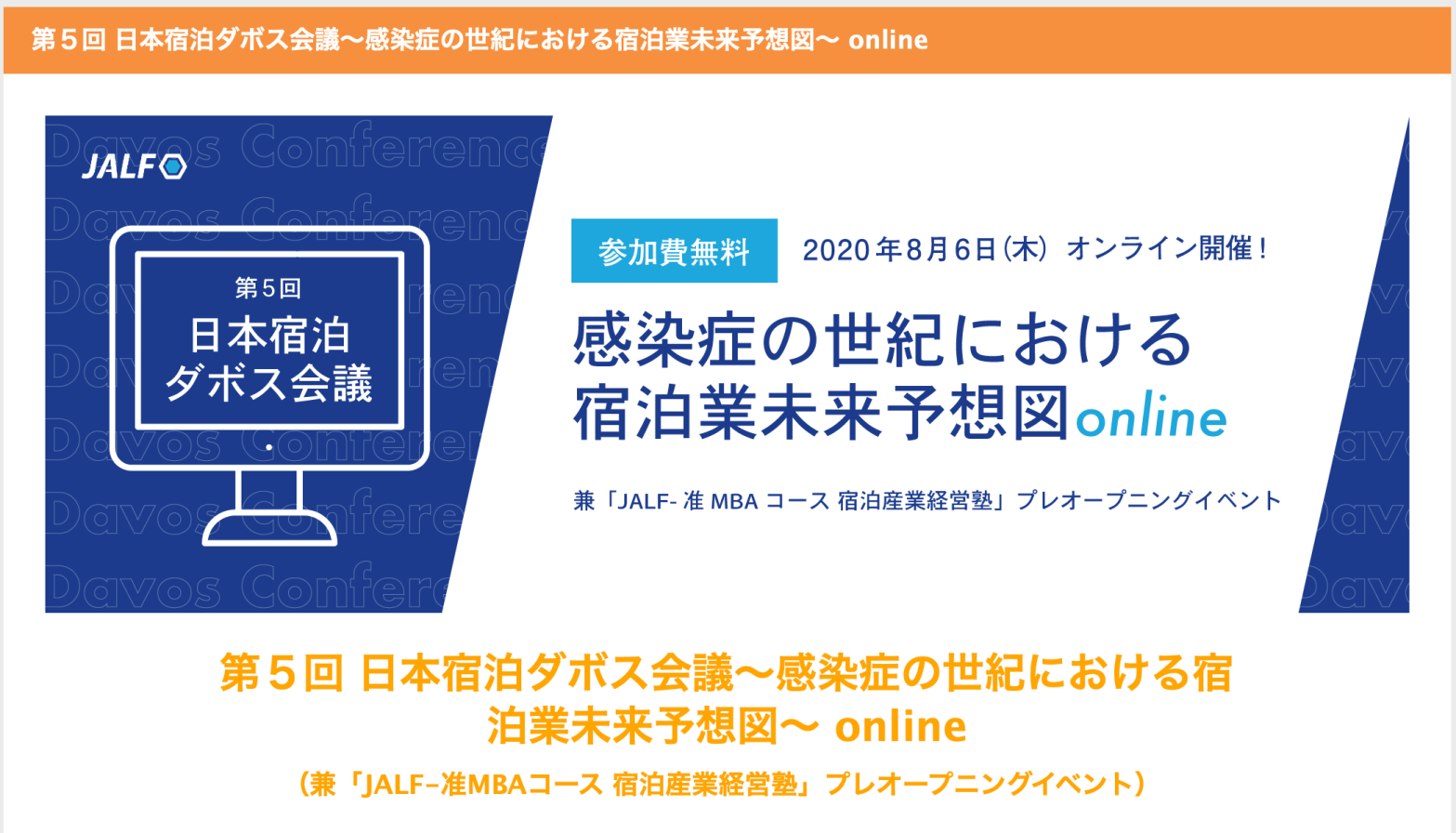 8月6日(木)の午後1時40分からの「第5回日本宿泊ダボス会議」Online http://jalf.or.jp/event/davos2020/ に登壇させていただきます。 今のコロナウィルス危機の現状についてどう認識続きを読む “公開セミナーのお知らせ”